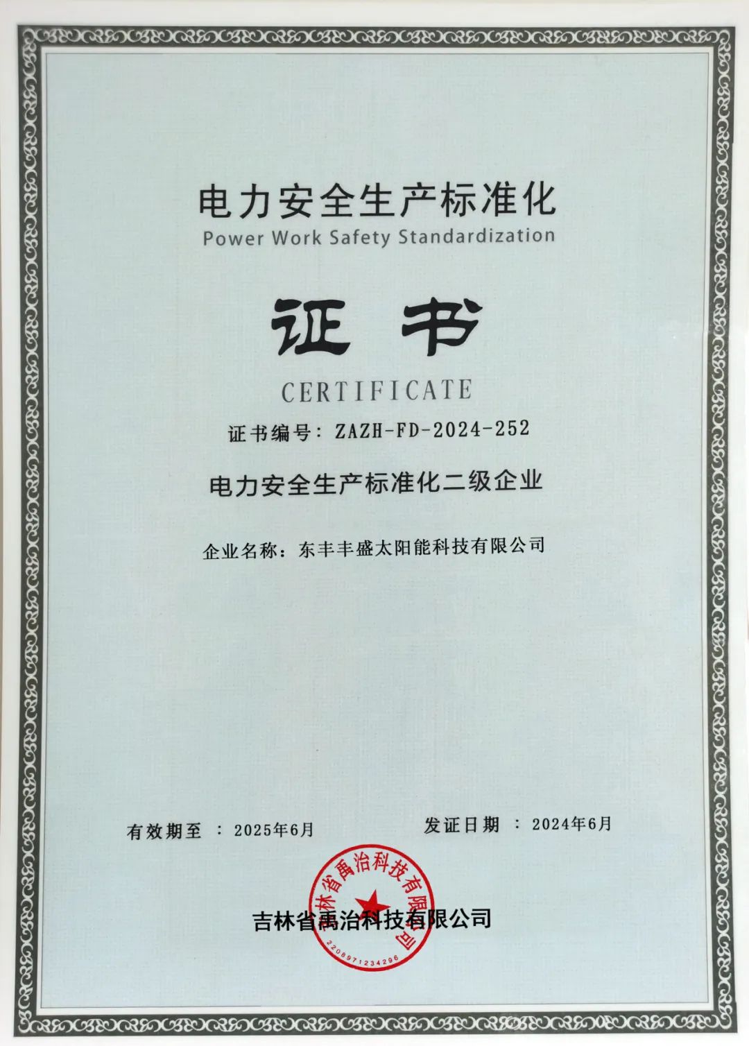 近日,青岛城投集团旗下新能源集团所属的三家项目公司阜新昌盛日电太阳能科技有限公司、东丰丰盛太阳能科技有限公司和大庆长元能源开发有限公司,成功通过了电力安全生产标准化企业二级达标认证,并荣获了电力安全生产标准化二级企业证书。这一成就是青岛城投新能源集团在安全生产标准化和安全管理体系建设方面取得的重要进展。