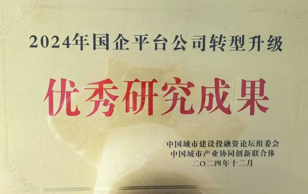 被中国城市建设投融资论坛组委会、中国城市产业协同创新联合体评为“2024年国企平台公司转型升级标杆企业”。