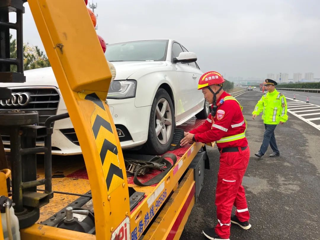 春运期间,青岛高速所辖路段共设置清障救援驻点20处,将站点前移至收费站和服务区,在站点间实施上下行交错管理,全力贯彻落实“2-8-20-30”工作机制,保障救援时效。投入各类型救援车辆近60台,装备卫星定位,配合指调平台研发的基于知识图谱的突发事件处置方案生成技术,快速计算救援车辆与被救车辆的距离,将救援接单调度时长缩短至2分钟内。同时,还为驻点清障救援车辆安装三路全时网络视频监控设备,分别记录车辆行进方向、车辆驾驶室内及车辆作业区情况,实时监督清障救援工作人员的服务质量和救援时效。