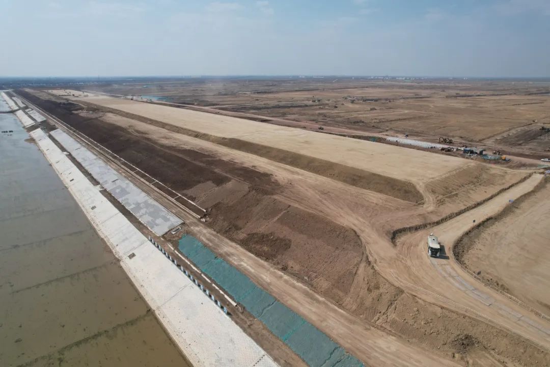 在官路水库工程建设工地上,300余名管理人员1000余名施工人员及700余台设备奋战在一线。作为山东省规划的南水北调东线工程的关键调蓄工程,官路水库工程总投资额91.45亿元,总库容2.11亿m³,建成后将大大提升青岛市应对季节性缺水与突发水情的能力,缓解城市供水压力。截至目前工程累计完成建设投资59.7亿元,占概算总投资65%。围坝填筑完成总量的94%,穿坝结构物完成总量的90%,截渗墙完成总量的100%,泵站工程完成总量的75%,引黄济青连接工程完成总量的85%,配套的电力、信息化工程已进场施工。建设者们将抢抓工期,攻坚克难,确保建设任务完满完成。