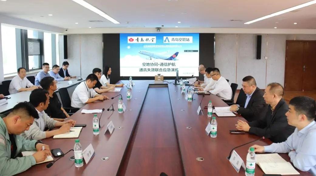 5月19日,青岛城投集团旗下青岛航空联合青岛空管站、烟台机场在青岛航空应急指挥中心举办主题为“空地协同・通信护航”的通信失效联合应急演练,民航青岛监管局现场督导。(图为应急演练启动会议现场)本次演练聚焦航空器通信失效特情场景,通过全流程实战化演练验证空地协同应急处置效能。下午15时,演练正式拉开序幕。一架A320客机模拟空中通信失效,各参演单位立即启动应急预案,青岛航空启用卫星通信系统,快速建立“机组-签派