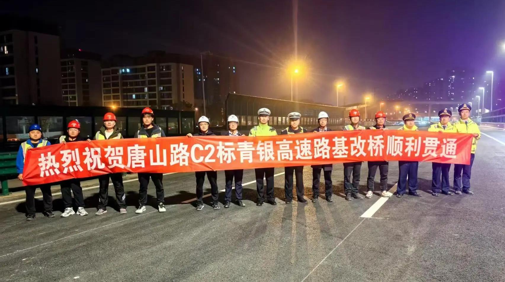 唐山路快速路工程青银高速路基改桥顺利贯通