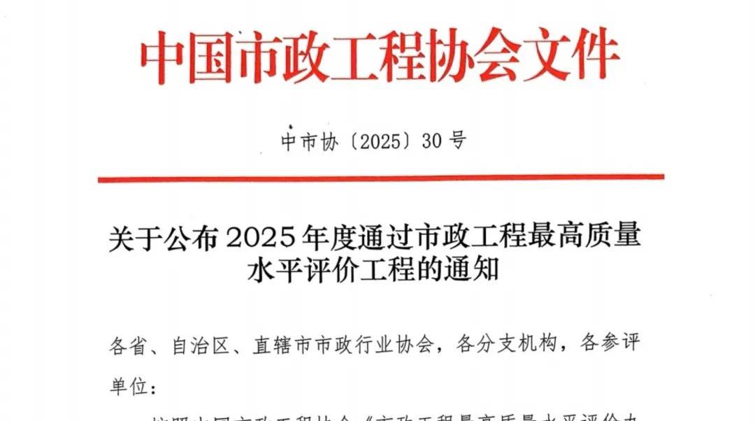 青岛城投荣获“中国市政工程最高质量水平评价”